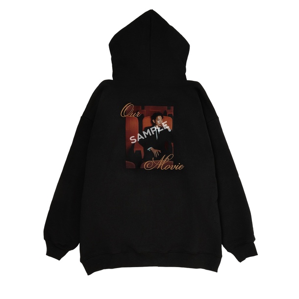 ポスターが大きくプリントされたジップアップパーカーです。