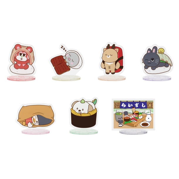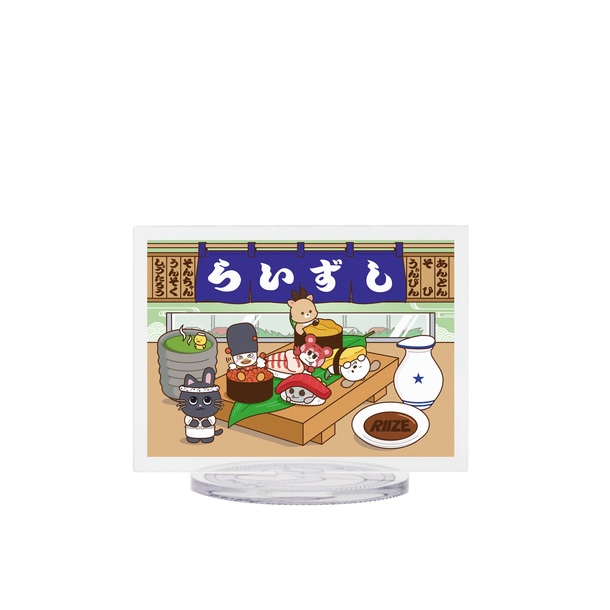 寿司皿に乗ったデザインがかわいいアクリルスタンドです。
