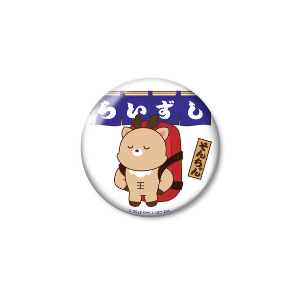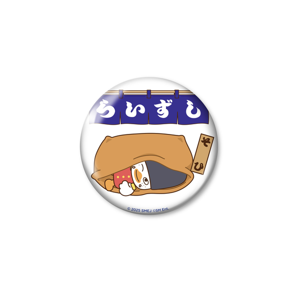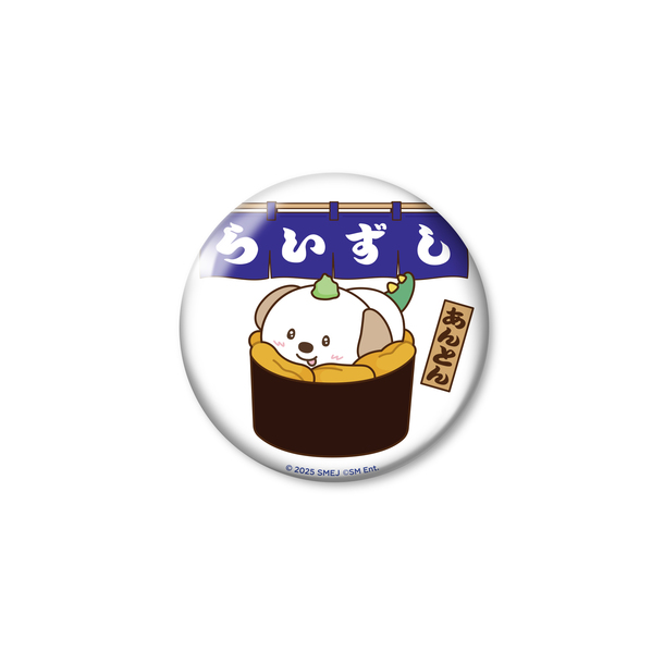 「らいずし」の暖簾デザインがポイントの缶バッジです。