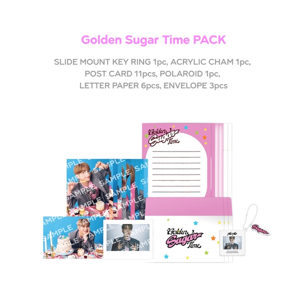 Golden Sugar Time PACK (Slide Mount Key Ring 1pc, Acrylic Charm 1pc, Postcard 11pcs, Polaroid 1pc, Letter Paper 6pcs, Envelope 3pcs)
