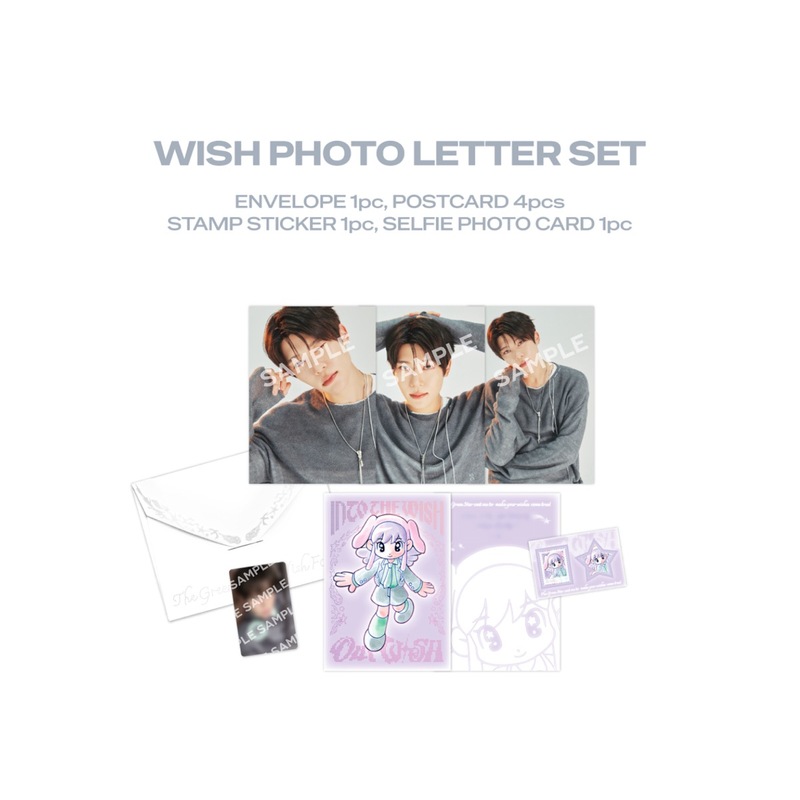WISH PHOTO LETTER SET (Envelope 1pc, Postcard 4pcs, Stamp Sticker 1pc, Selfie Photo Card 1pc)