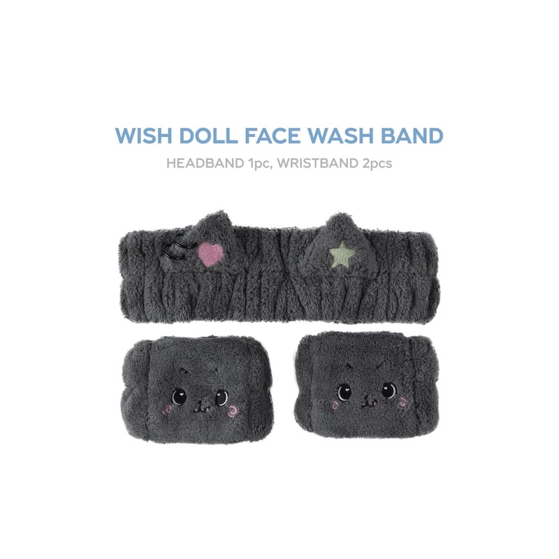 WISH DOLL FACE WASH BAND (Headband 1pc, Wristband 2pcs)