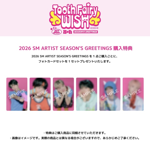 2026 SM ARTIST SEASON'S GREETINGSを1点ご購入ごとに、フォトカードセットを1セットプレゼントいたします。