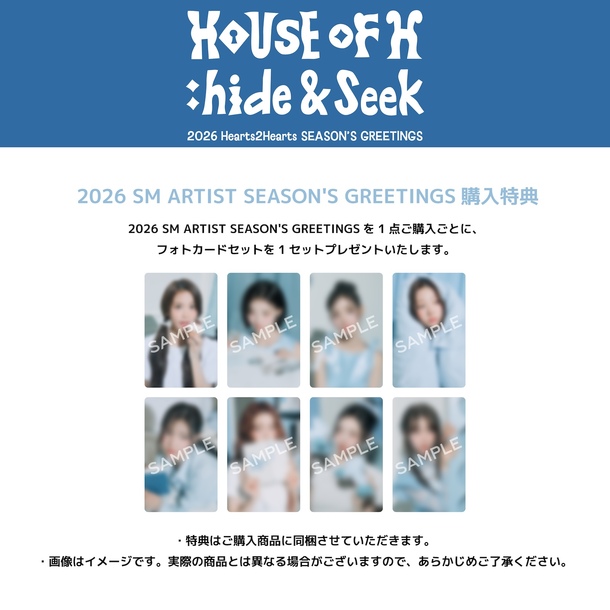 2026 SM ARTIST SEASON'S GREETINGSを1点ご購入ごとに、フォトカードセットを1セットプレゼントいたします。